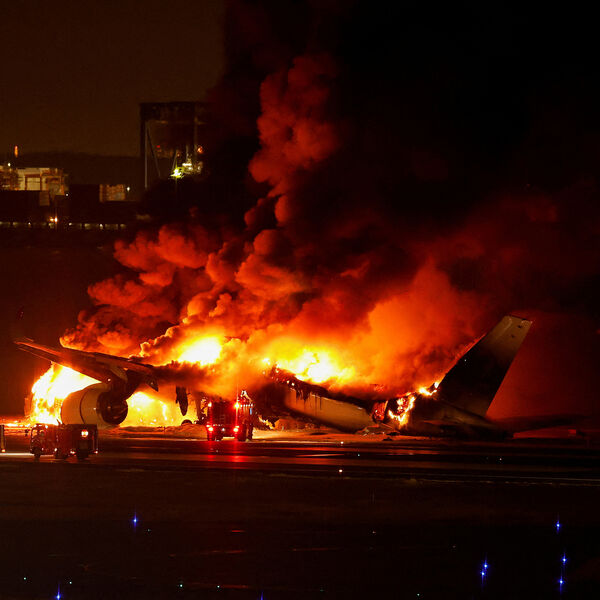 Во время рулежки в него въехал Airbus A350, прибывающий из Саппоро. Оба самолета после столкновения загорелись.