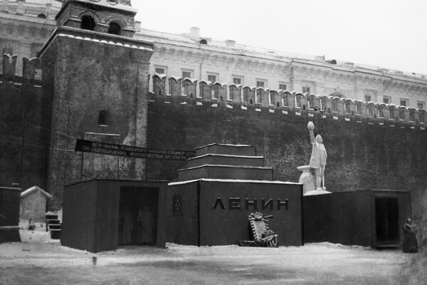 Утром 27 января в почетном карауле у гроба Ильича стояли Сталин, Калинин и рабочие из Ленинграда — город переименовали накануне. Потом гроб с Лениным вынесли из Дома Союзов и понесли к мавзолею. При большом скоплении народа было зачитано обращение от съезда Советов о необходимости продолжать революционную борьбу.