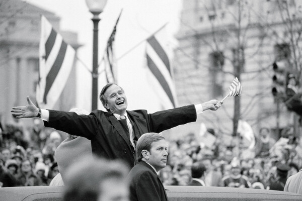 Спустя пару лет, в 1989 году, Буш-старший был избран президентом США. «Я предстаю перед вами и вступаю в должность президента в момент, полный надежд. Мы живем в мирное, процветающее время, но мы можем сделать его лучше. Ибо дует новый ветерок, и мир, освеженный свободой, кажется возрожденным; ибо в сердце человека, если не на самом деле, дни диктатуры прошли. Тоталитарная эпоха уходит, ее старые идеи сдуваются, как листья с древнего, безжизненного дерева», — заявил он во время инаугурации.