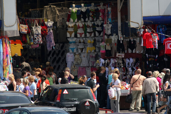 Торговля на Черкизовском вещевом рынке в Москве