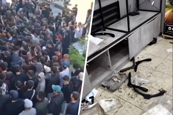 «Толпа неконтролируемая, практически все разнесли. Мы даже вещи бесплатно уже отдали, чтобы люди просто вышли. Женщины и дети были, мы им сказали: «Просто бесплатно забирайте и уходите». Чтобы эта давка закончилась», — рассказал хозяин магазина Ильяс Магомедов.