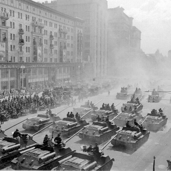 80 лет назад по Красной площади прошел Парад Победы, в котором участвовали 35 325 бойцов и командиров Красной армии и Военно-морского флота. Шествие поставило финальную точку в войне Советского Союза против гитлеровской Германии. Символом окончательной победы СССР в Великой Отечественной войне стали 200 знамен поверженных дивизий нацистов, брошенные к подножью мавзолея. Командовал Парадом маршал Константин Рокоссовский, а принимал его маршал Георгий Жуков. На Красной площади в тот день были представлены 1850 единиц боевой техники. В параде, длившемся 122 минуты, приняли участие 24 маршала, 249 генералов, 2536 офицеров, 31 116 сержантов и красноармейцев. Кроме наземной, предполагалась авиационная программа парада, после чего также планировалось провести гражданскую часть торжества, в ходе которой по Красной площади вслед за военными должны были пройти передовики трудовых коллективов Москвы. Однако эти мероприятия пришлось отменить из-за дождливой погоды 24 июня в столице.