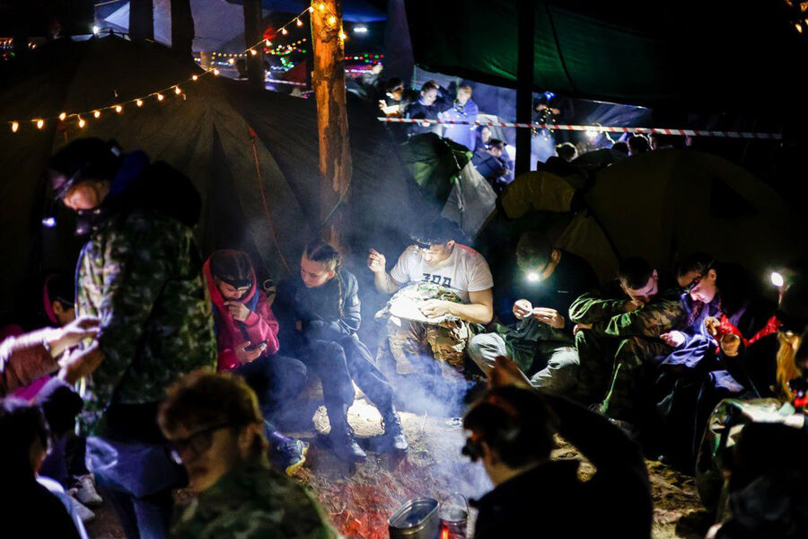 Холодный осенний лес где-то под Москвой. Кучи палаток, россыпь костров, которые непрерывно горят три дня подряд, толпы парней и девушек в камуфляже. Это не военные сборы и не лагерь молодых бойскаутов, как могло бы показаться со стороны. Здесь не учат управлять дронами, вязать узлы или ходить строем — но попасть сюда каждый год стремятся сотни желающих.