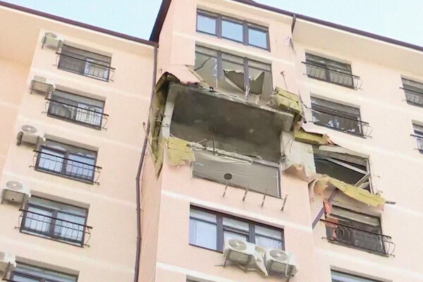 Позднее оперштаб уточнил, что еще в двух домах — пяти- и шестнадцатиэтажном — также разбиты окна и повреждены фасадные элементы. По предварительным данным, там обошлось без пострадавших. Возгораний в жилом секторе не произошло.