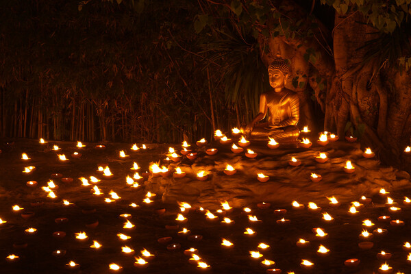 Висакха Буча — Таиланд. Один из самых важных буддийских праздников в Таиланде отмечают в день полнолуния шестого лунного месяца. В этот день вспоминают рождение Будды, просветление и его уход в нирвану. Буддисты по всей стране проводят очень красивую церемонию Вьен-Тиен. Они обходят зал храма три раза по часовой стрелке, держа в руках зажженные свечи, цветы и благовония. Жители страны украшают дома бумажными фонариками и гирляндами. Ночью тайцы выходят на массовые шествия с фонарями.