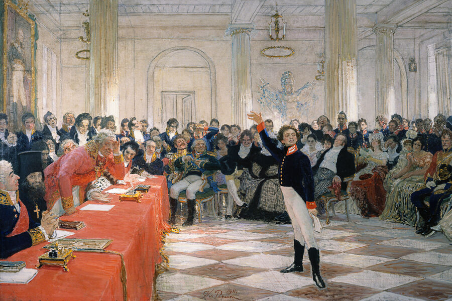 Репродукция картины «Пушкин на лицейском экзамене в Царском Селе 8 января 1815 года», 1911 год