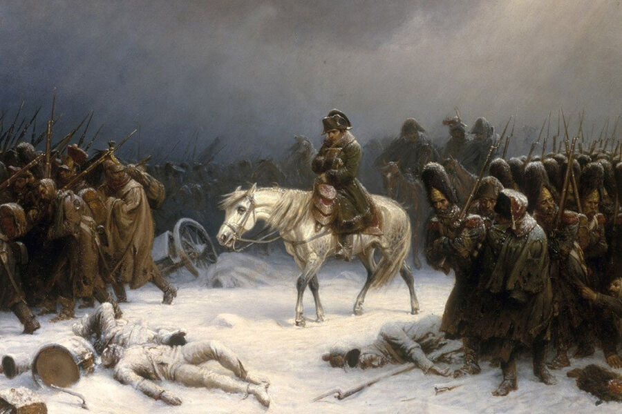 - 1812 год — Наполеон Бонапарт начал отступление своей Великой армии из Москвы. Пребывание в сожженном городе оказалось бесперспективным, а суровая зима и постоянные атаки армии Кутузова превратили это отступление в катастрофу, которая предопределила крах наполеоновской империи.