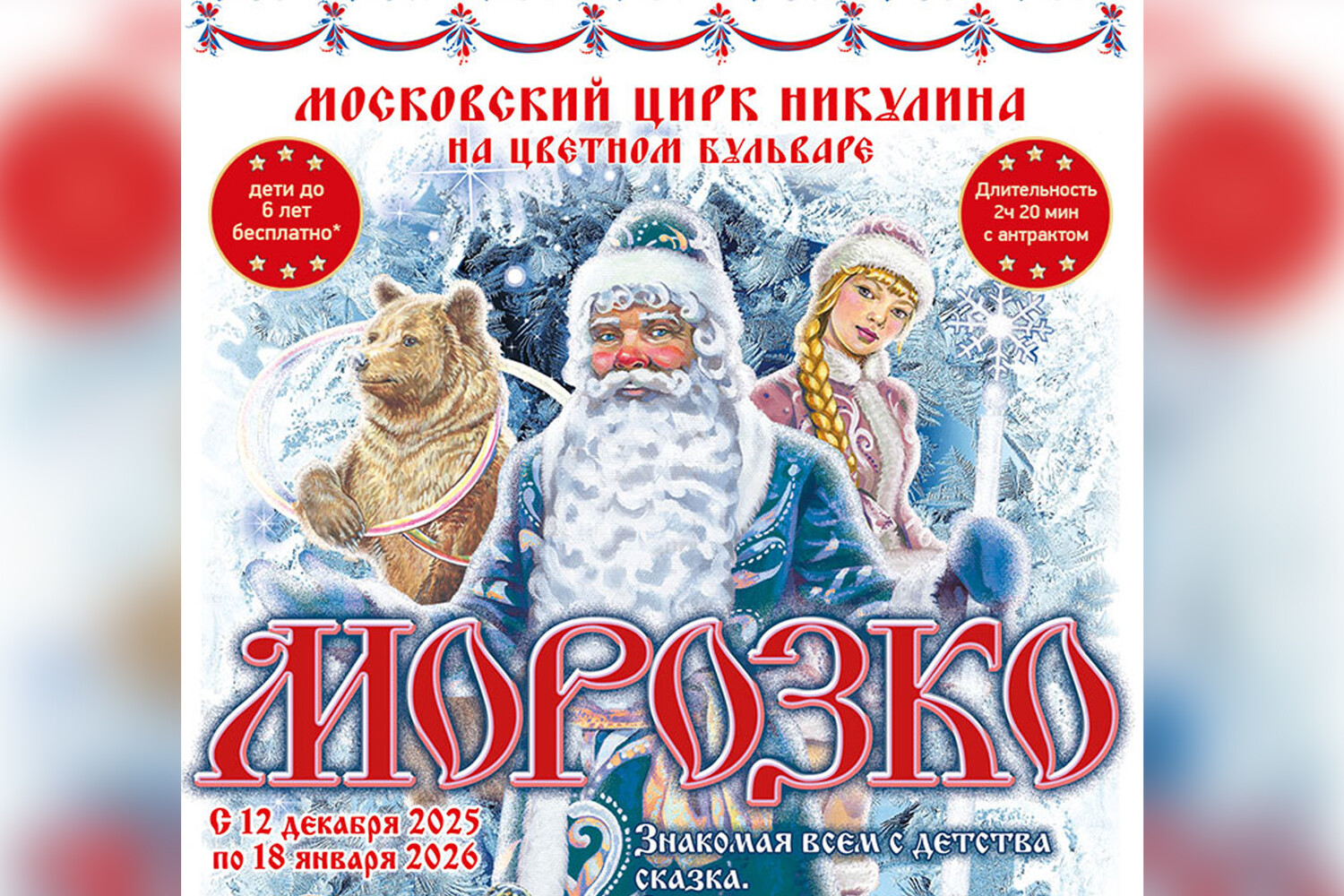 Погрузиться в волшебную атмосферу сказки «Морозко» можно будет в Московском цирке Никулина на Цветном бульваре. Его артисты подготовили красочный спектакль по мотивам знаменитого новогоднего произведения. Акробаты, жонглеры, гимнасты и дрессировщики со своими питомцами органично вписались в сюжет и уже готовы удивлять зрителей. Организаторы обещают эффектные прыжки, фантастическую пластику движений, сложнейшие трюки и добрый юмор.