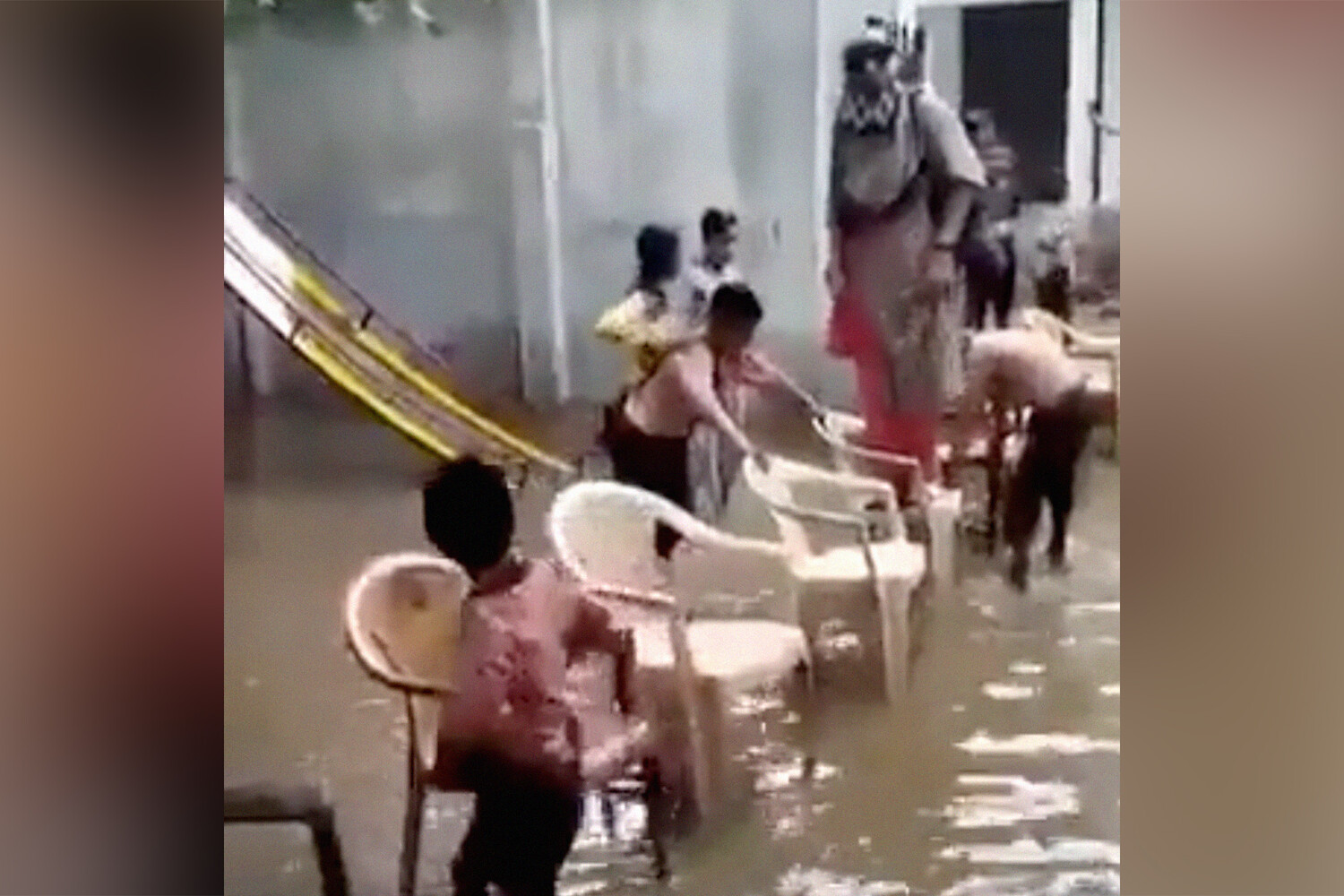 В Индии дети построили для учительницы мост из стульев, чтобы помочь ей попасть в школу