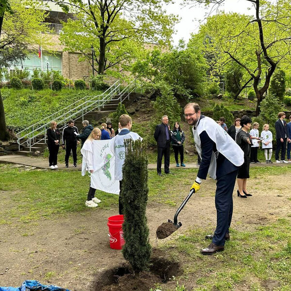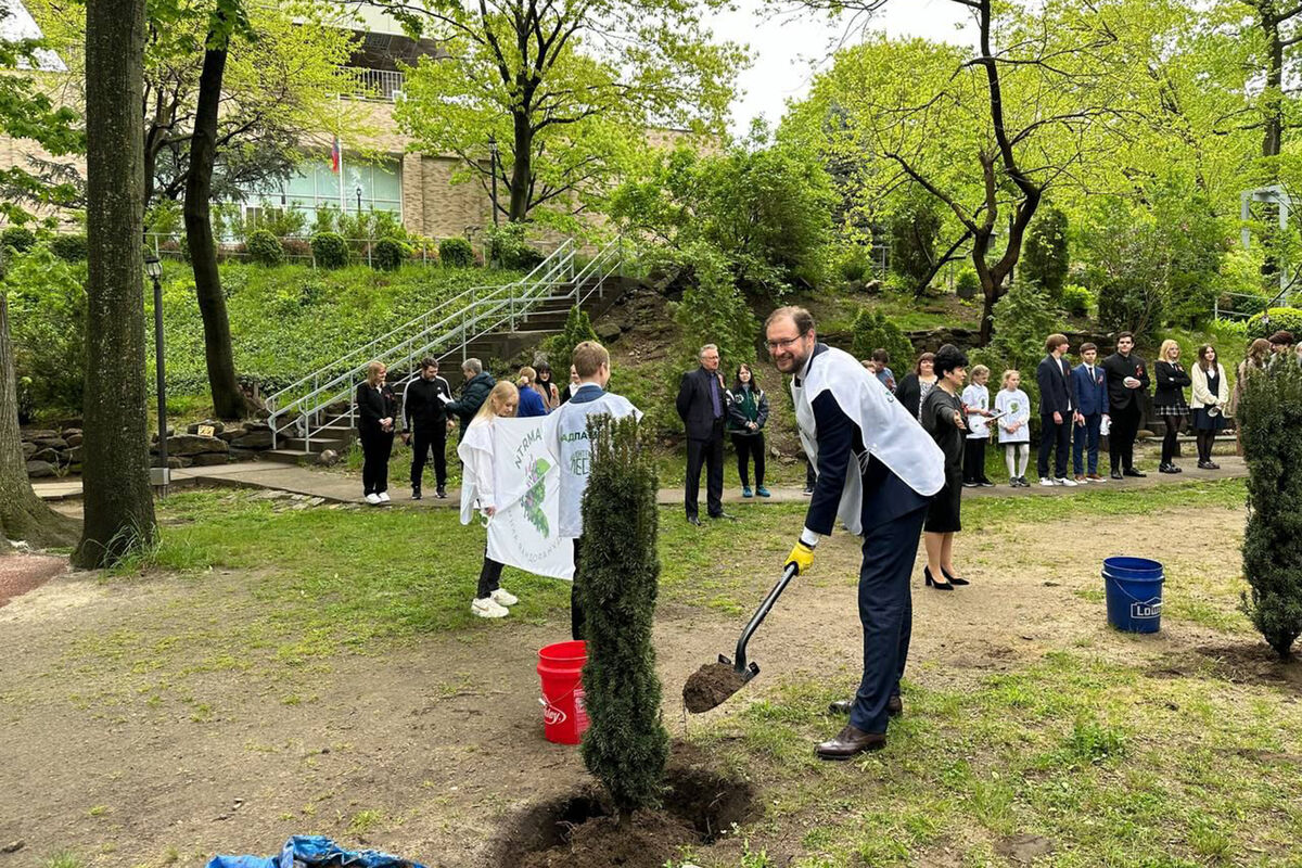 Высадка прошла на территории российского дипломатического жилого комплекса при участии школьников и учителей Общеобразовательной школы при Постпредстве.