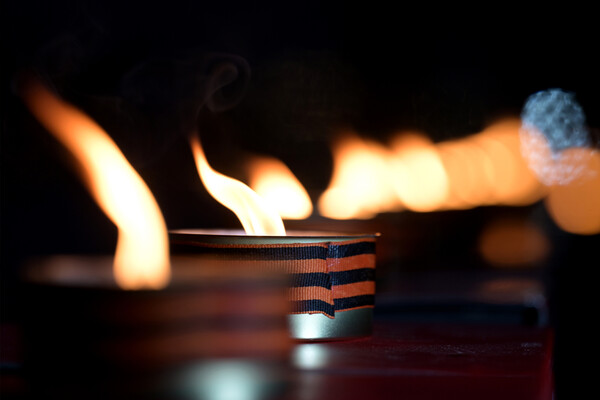 Участники акции выложили картину из лампад, символизирующую вклад фронта и тыла в Великую Победу. Также из огней собрали надпись «Россия помнит».