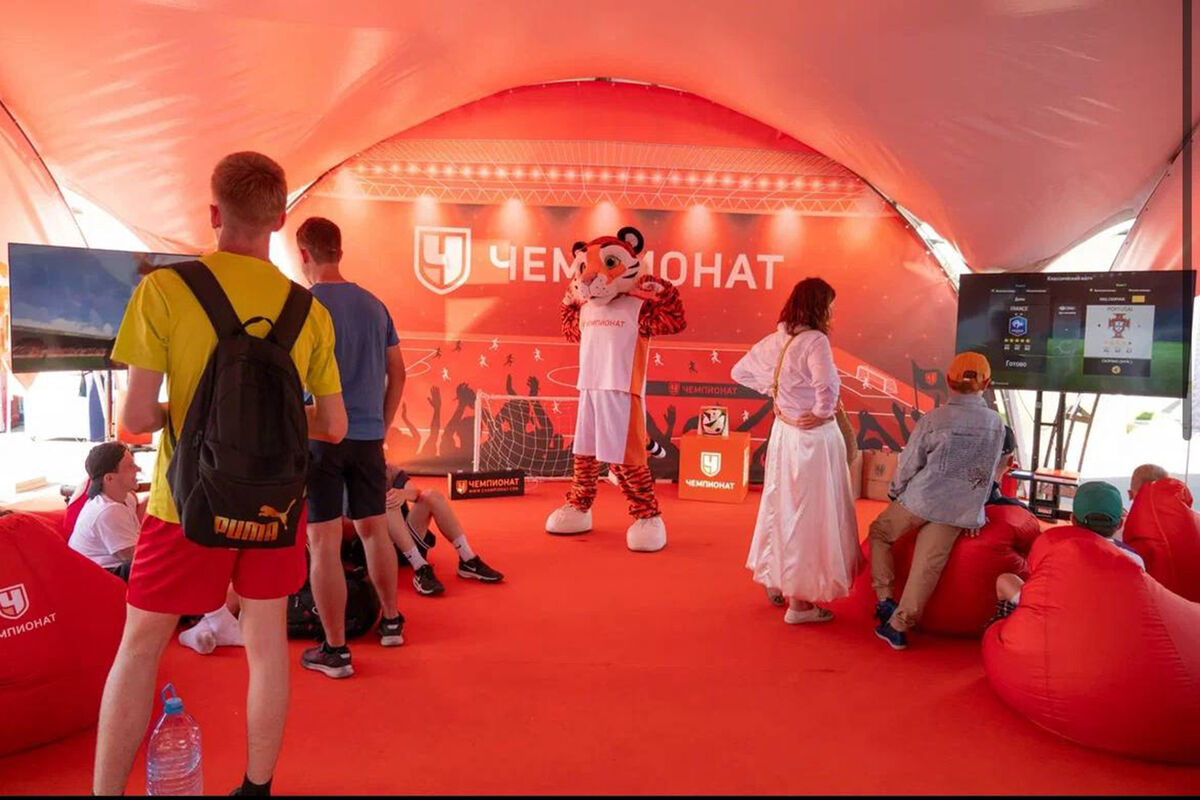 Портал расположился совсем недалеко от главной сцены. В локации «Чемпионата» для посетителей была организована игровая зона с PS5, кикером и аэрохоккеем, а также лаунж-зона с мягкими пуфами и столиками с зарядными станциями. Кроме того, сотрудники портала разыгрывали уникальные сувениры и призы, например, мяч Евро-2024.