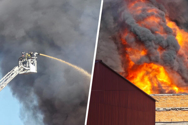 Как сообщает МЧС, в здании частично обрушилась кровля. Внутри склада находятся 30 газовых баллонов, из них 10 успели вынести пожарные.