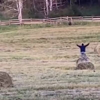В Белорецке местный житель напугал медведя необычным способом. Мужчина заметил хищника в поле. Чтобы казаться больше и прогнать зверя, ему пришлось взобраться на стог сена и начать размахивать руками.