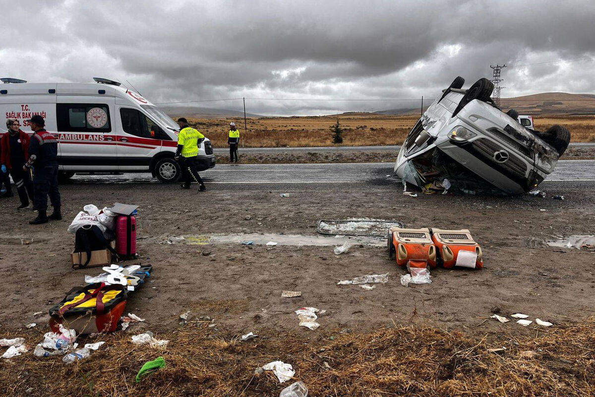«Микроавтобус перевернулся у города Аджигель провинции Невшехир после того, как водитель потерял управление на дождливой трассе», — говорится в сообщении.