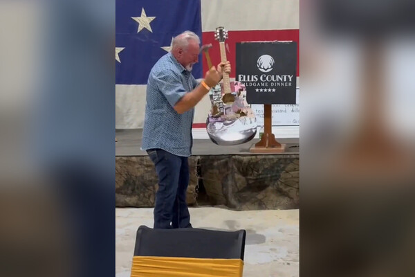 Как сообщается, техасец, недовольный тем, что кантри-певица поддержала кандидата в президенты США от демократической партии, купил инструмент только для того, чтобы уничтожить его на глазах у зрителей в знак протеста. Молоток для перформанса ему вручил сам аукционист, после чего покупатель разбил молотком лицевую сторону гитары под громкие аплодисменты очевидцев.