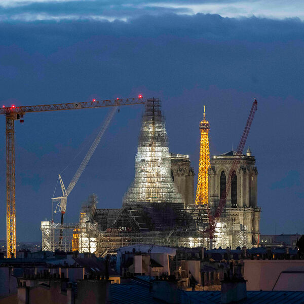 В ноябре 2023 года стало известно, что реставраторы установили на собор шпиль, идентичный тому, который сгорел при пожаре. Высота деревянной конструкции составила 96 м. В мае этого года президент Франции Эммануэль Макрон пообещал, что отреставрированный после пожара Нотр-Дам откроется 8 декабря.