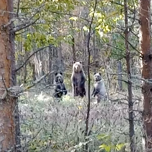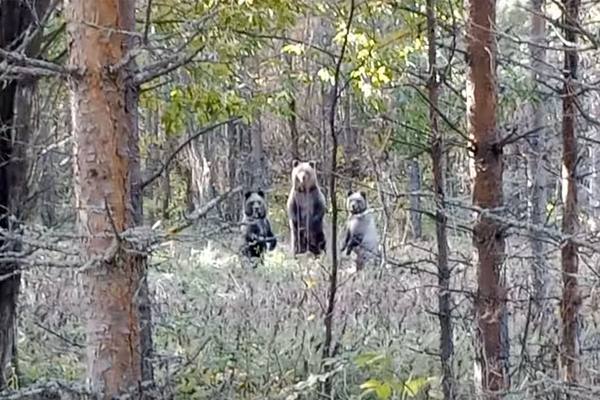 Заметив госинспекторов, медведи встали на задние лапы. На кадрах ролика, опубликованного в сети, инспектору удалось прогнать зверей одной фразой.