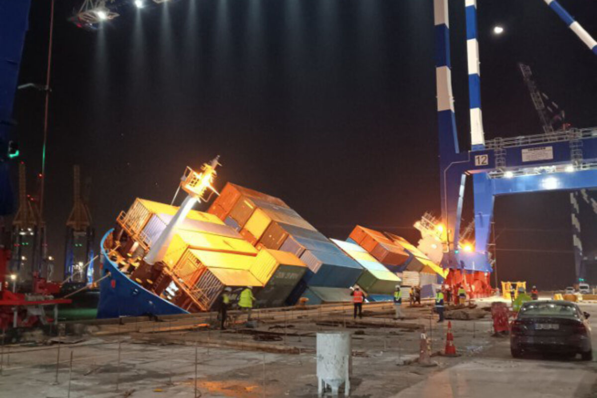 Контейнеровоз Amnah под флагом Коморских островов опрокинулся на бок в порту Амбарлы-Марпорт в городе Стамбул. Об этом сообщило министерство транспорта Турции в социальной сети X.