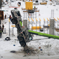 В материале отмечается, что финансирующая реализацию проекта компания подтвердила информацию о падении автокрана. Как рассказали представители организации, машина весом 25 тонн опрокинулась во время подъема груза, а именно — щитов опалубки.