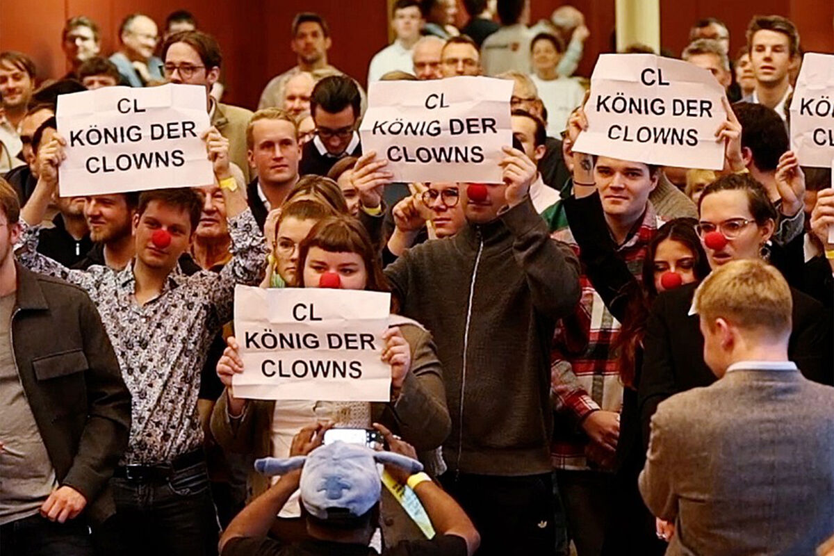 Активисты с клоунскими носами прервали выступление бывшего министра финансов Германии и главы Свободной демократической партии (СвДП) Кристиана Линднера в Баварии, подняв баннеры с надписью «король клоунов». Об этом сообщает немецкий телеканал NTV.