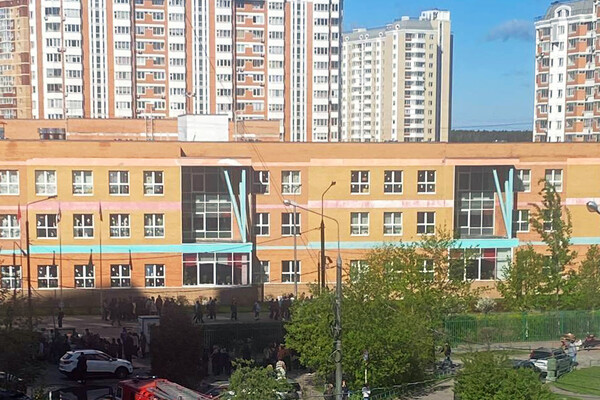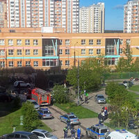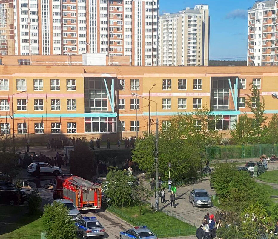 На кадрах видно, что школьников вывели с территории учебного заведения, рядом дежурят экипажи скорой помощи, сотрудники полиции и пожарные расчеты.
