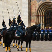 В субботу, 10 мая, не будет проводиться церемония развода пеших и конных караулов Президентского полка на Соборной площади Кремля. Об этом сообщает РИА Новости со ссылкой на отдел по связям с прессой и общественностью Федеральной службы охраны РФ.