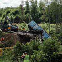 В ночь на 1 июня железнодорожный мост, по которому двигался грузовой локомотив, обрушился в Курской области. Инцидент произошел на 48-м км трассы Тросна — Калиновка в Железногорском районе. В результате происшествия загорелся тепловоз.