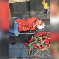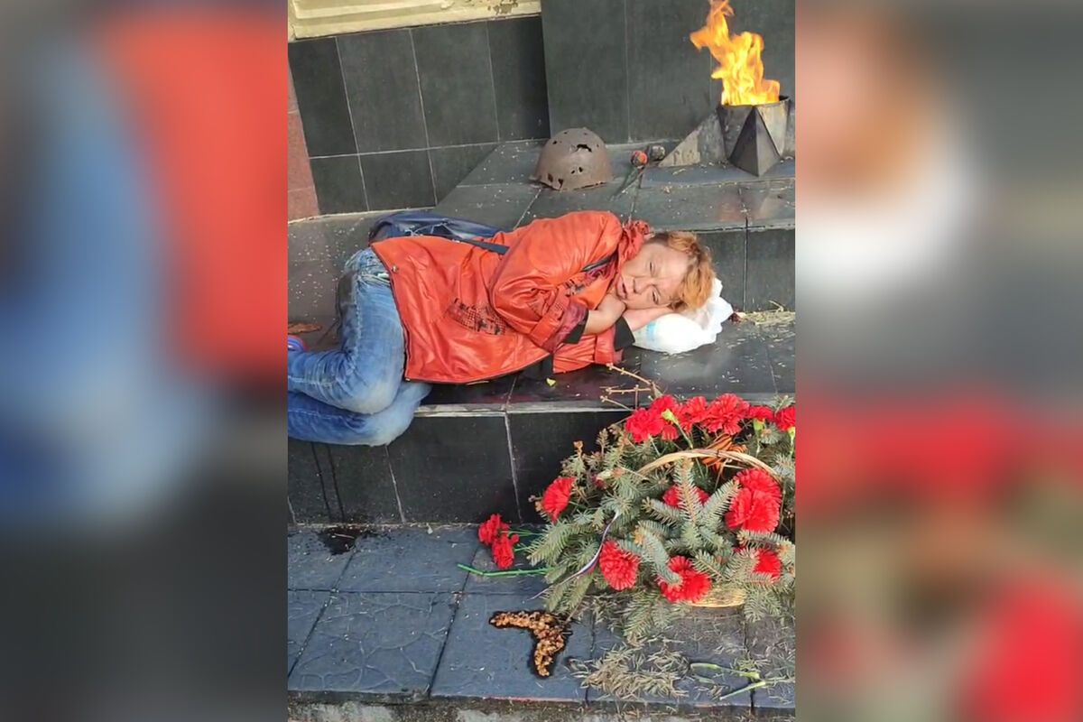 Инцидент произошел в городе Люберцы. Женщина легла спать на мемориале возле Вечного огня. На кадрах с места видно, как нарушительница в грязной одежде спит рядом с цветами, положив голову на пакет. Мужчина, ставший очевидцем случившегося, разбудил ее и попросил уйти.