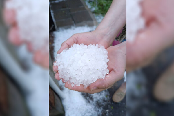 На опубликованных кадрах показаны горсти крупного града, который выпал в подмосковных Наро-Фоминске и Апрелевке.