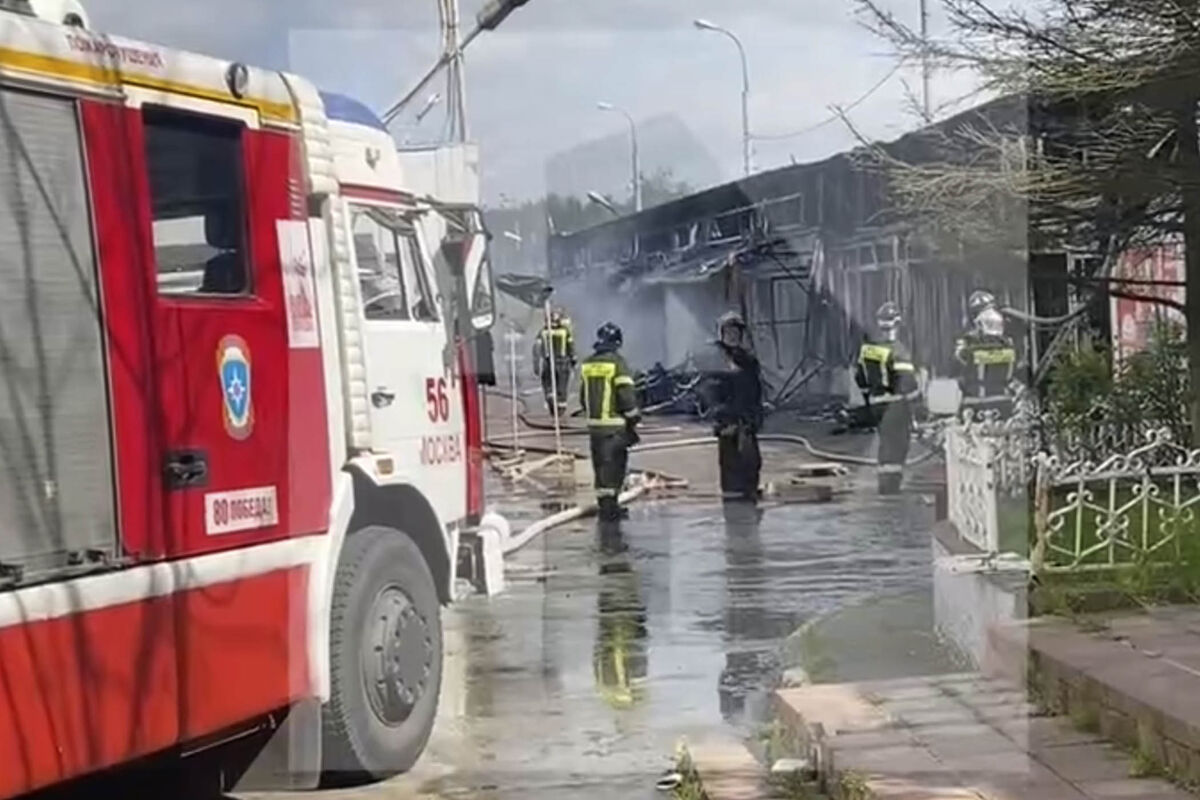 Департамент гражданской обороны, чрезвычайных ситуаций и пожарной безопасности столицы показал кадры тушения пожара на рынке в Москве. Фотографии были опубликованы в Telegram-канале ведомства.