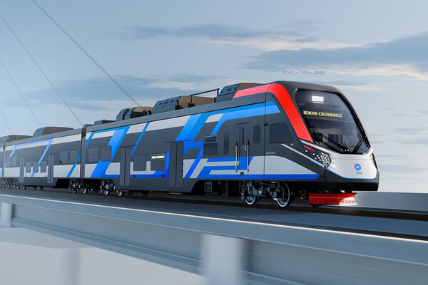 «Трансмашхолдинг» показал экстерьер первого в России пассажирского поезда на водородных топливных элементах. Фото опубликовали в официальном Telegram-канале компании.