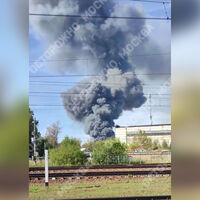 На обнародованных кадрах можно заметить, что над складскими помещениями поднялся огромный столб черного дыма. К месту инцидента стянулись пожарные расчеты.