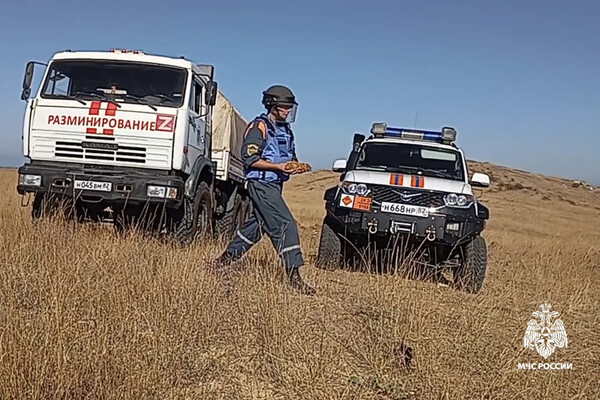 В МЧС посоветовали россиянам при обнаружении подобных объектов не подходить к ним близко и сообщать об опасной находке силовикам.