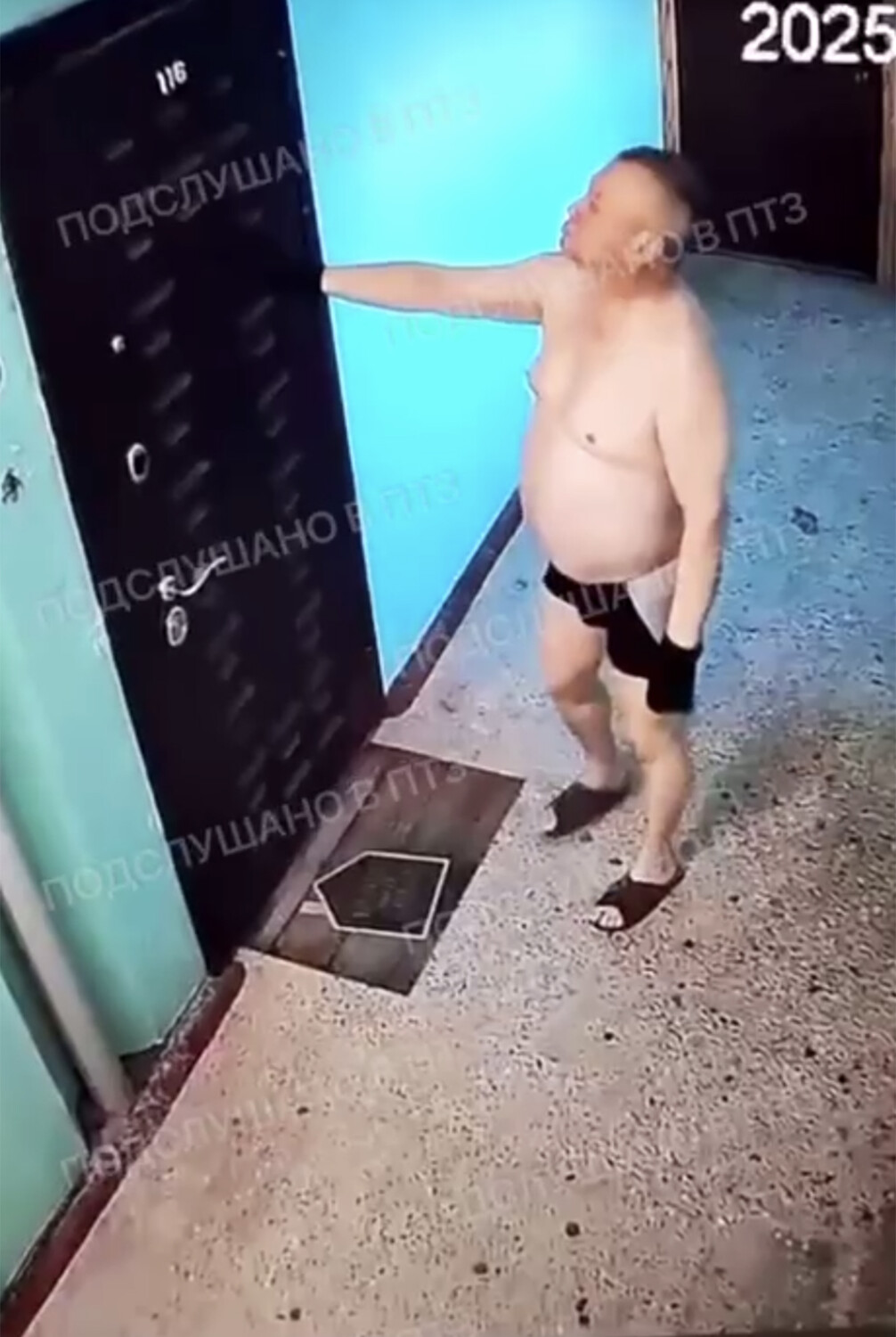 Инцидент произошел в жилом доме в районе Древлянка в Петрозаводске. На видеозаписях видно, как мужчина в одних трусах, вооруженный ножом, выкрикивает нечленораздельные звуки, дергает ручку чужой двери и наносит по ней удары кулаком.