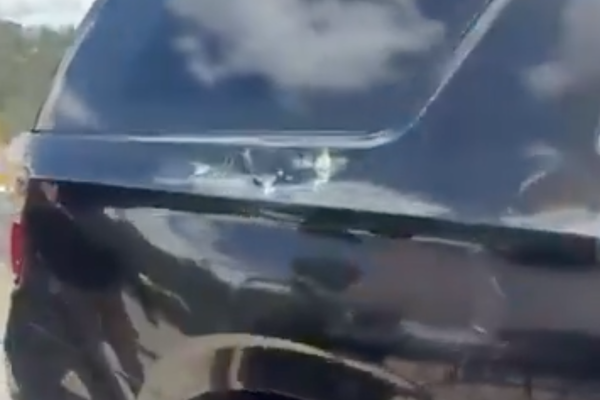 Радиоканал также опубликовал видеозапись с места происшествия, на которой запечатлены, предположительно, следы от пуль на автомобиле.