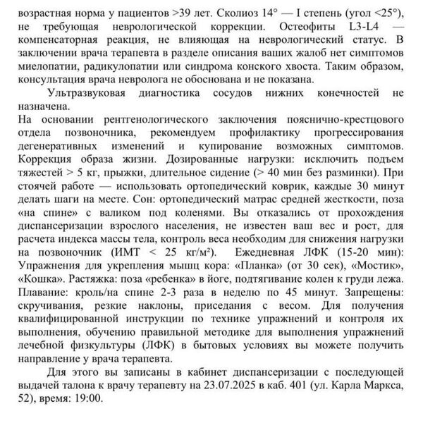 В региональном министерстве отметили, что у пациента нет показаний для консультации невролога. При этом заявителю посоветовали обратиться к терапевту, чтобы тот выдал ему направление на инструктаж по правильному выполнению упражнений лечебной физкультуры в домашних условиях.