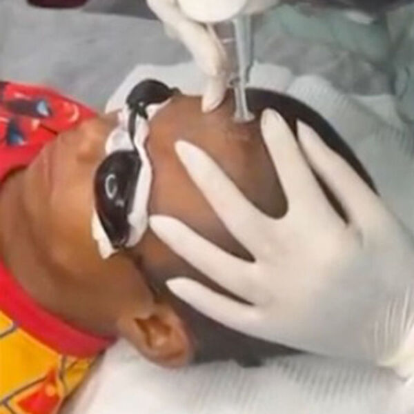 Сначала ребенку нанесли обезболивающий крем, а затем удалили рисунки лазером. Као спокойно переносил процедуру в защитных очках, несмотря на боль. Процесс занял около 15 минут.