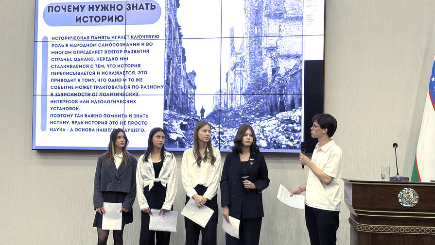 Презентацию провели на территории мемориального комплекса «Парк Победы». В рамках мероприятия школьники средних и старших классов Ташкента представили доклады, направленные на разоблачение попыток западных стран переписать историю и присвоить себе победу во Второй мировой войне.