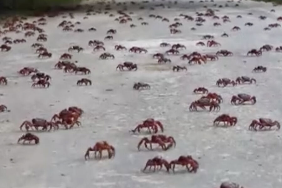 Миллионы крабов заполонили автодороги острова, чтобы добраться из леса до океана. Там самки и самцы будут спариваться, после чего отложат яйца. Из них появятся личинки, которые через месяц превратятся в молодых крабов и начнут мигрировать обратно в лес, сообщает телеканал.