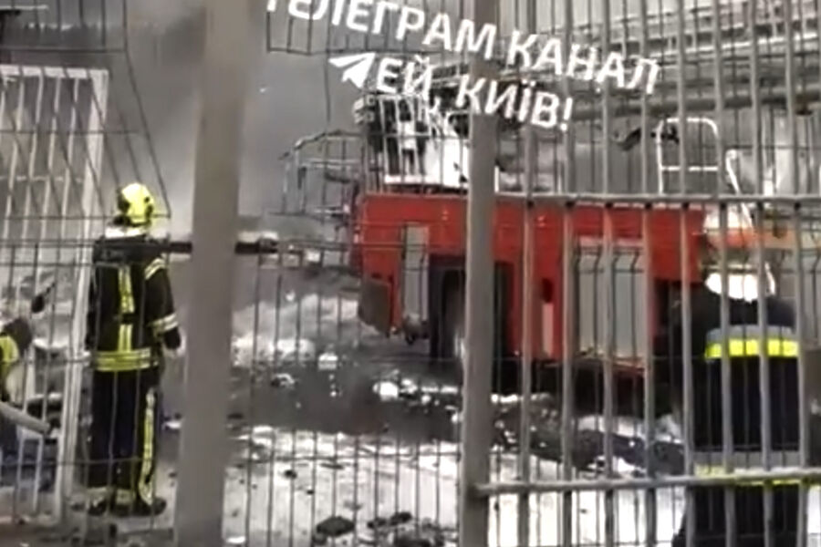 Момент обрушения здания радиозавода в Киеве после удара ВС России сняли на видео