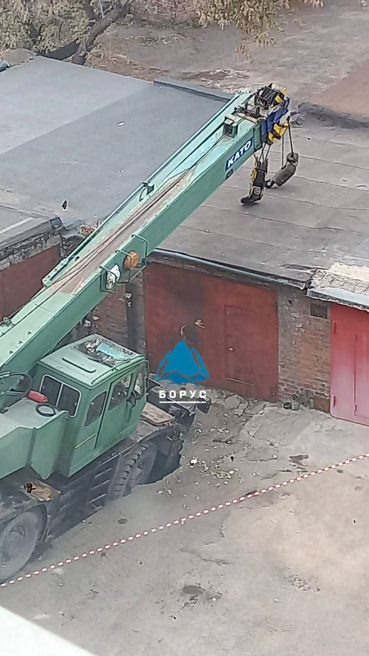 «В департаменте градостроительства пояснили, что кран покосился еще в начале октября. Техника стояла на неровной поверхности и, при попытке поднять груз, кран накренился и оперся стрелой о соседний гараж», — говорится в посте.