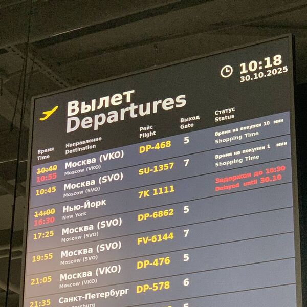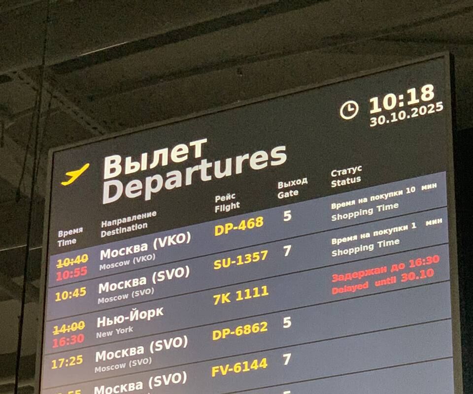 На табло российского аэропорта заметили рейс в Нью-Йорк