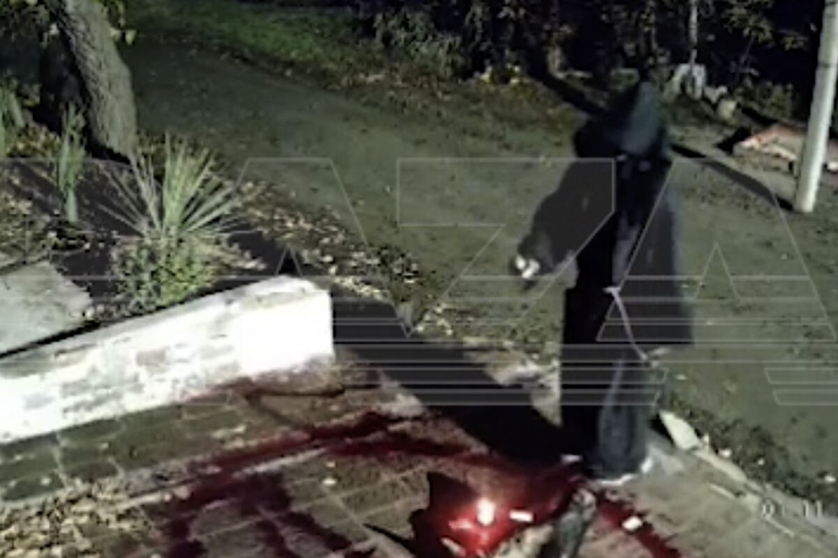В результате камера запечатлела, как неизвестный таролог-сатанист (Международное движение сатанизма признано в РФ экстремистским, его деятельность запрещена) в черной мантии нарисовал у ворот кровью огромную пентаграмму и провел некий обряд со свечами. Он также положил в центре композиции отрезанную голову коровы и карты Таро. По некоторой информации, арканы карт, которые оставил злоумышленник, используются в обрядах на тяжелую болезнь и физическое устранение.