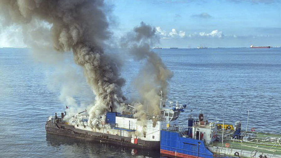 Ранее пламя охватило судно в порту в Ленинградской области.