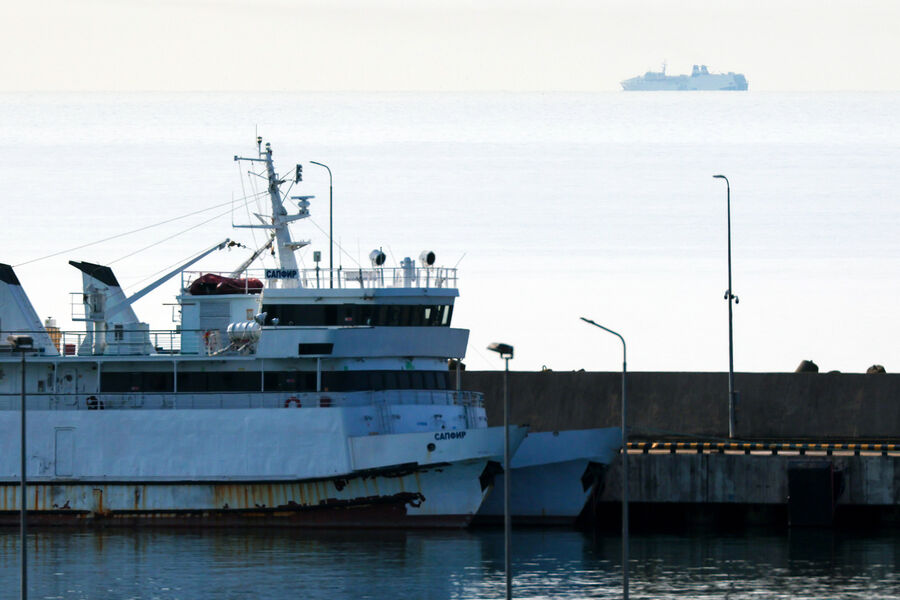 Он добавил, что в 13:00 мск паром встанет на внутренний рейд для досмотра, а оттуда отправится в порт. По его словам, разрешение на вход уже получено.