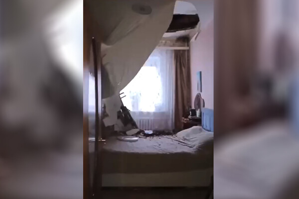 На опубликованных местными пабликами видео показаны последствия обрушения из квартиры этажом ниже, в частности обвалившаяся на кровать часть потолка.