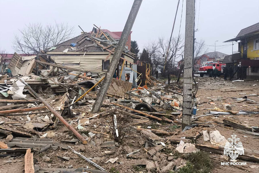 Предварительно, в результате взрыва полностью разрушен частный дом, повреждены кровля и фасад соседнего.