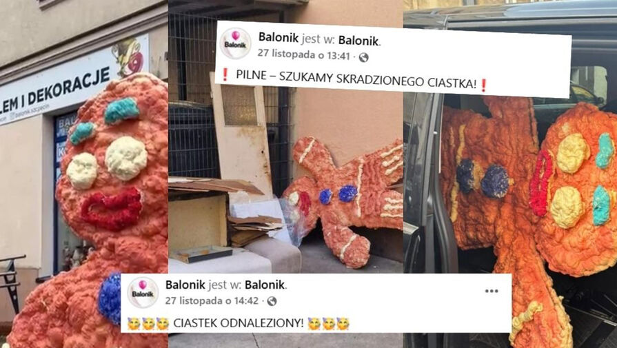 Пряничного человечка, стоявшего у входа в магазин Balonik на улице Мицкевича в Щецине, украли в середине ноября. Затем похититель связался с владельцами магазина и потребовал 200 злотых (4200 рублей — прим. ред.) за возврат уличного декора.