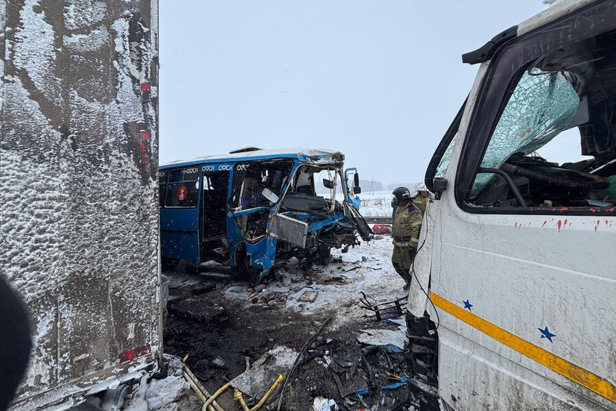 Уточняется, что водитель водитель грузового автомобиля, двигавшийся в сторону Омска, выехал на полосу встречного движения, где столкнулся с пассажирским автобусом ПАЗ, который следовал по маршруту Омск - Крутинка.